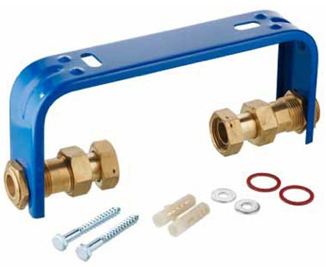 Konsola z regulowanymi półśrubunkami które pozwalają zamontować wodomierz o rozstawie 16-27 cm o gwincie zewnętrznym 1”