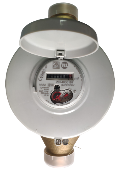 Wodomierz obrotowy z obrotową głowicą, z suchym zespołem liczydła i z transmisją magnetyczną super dry do pomiaru wody zimnej.